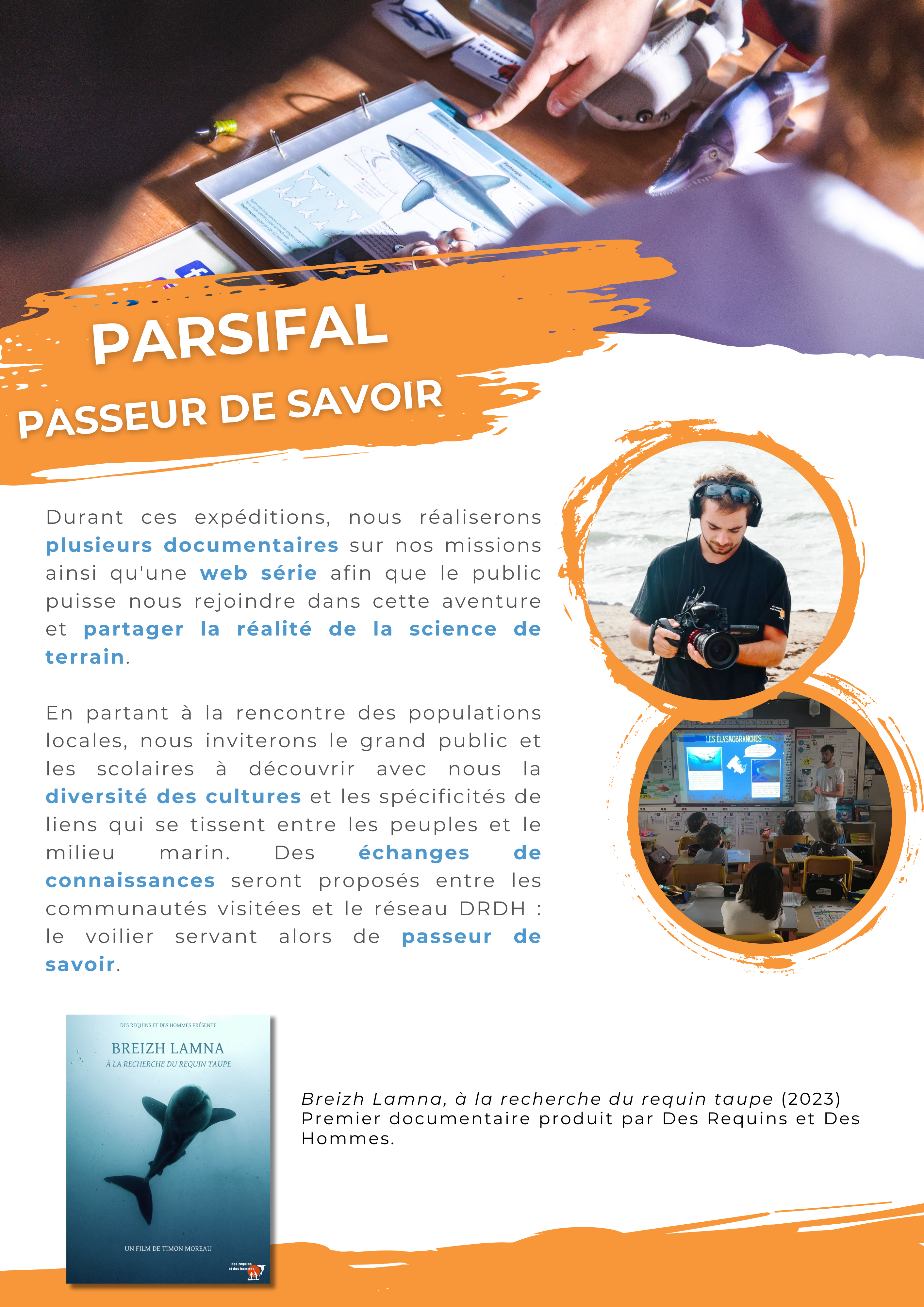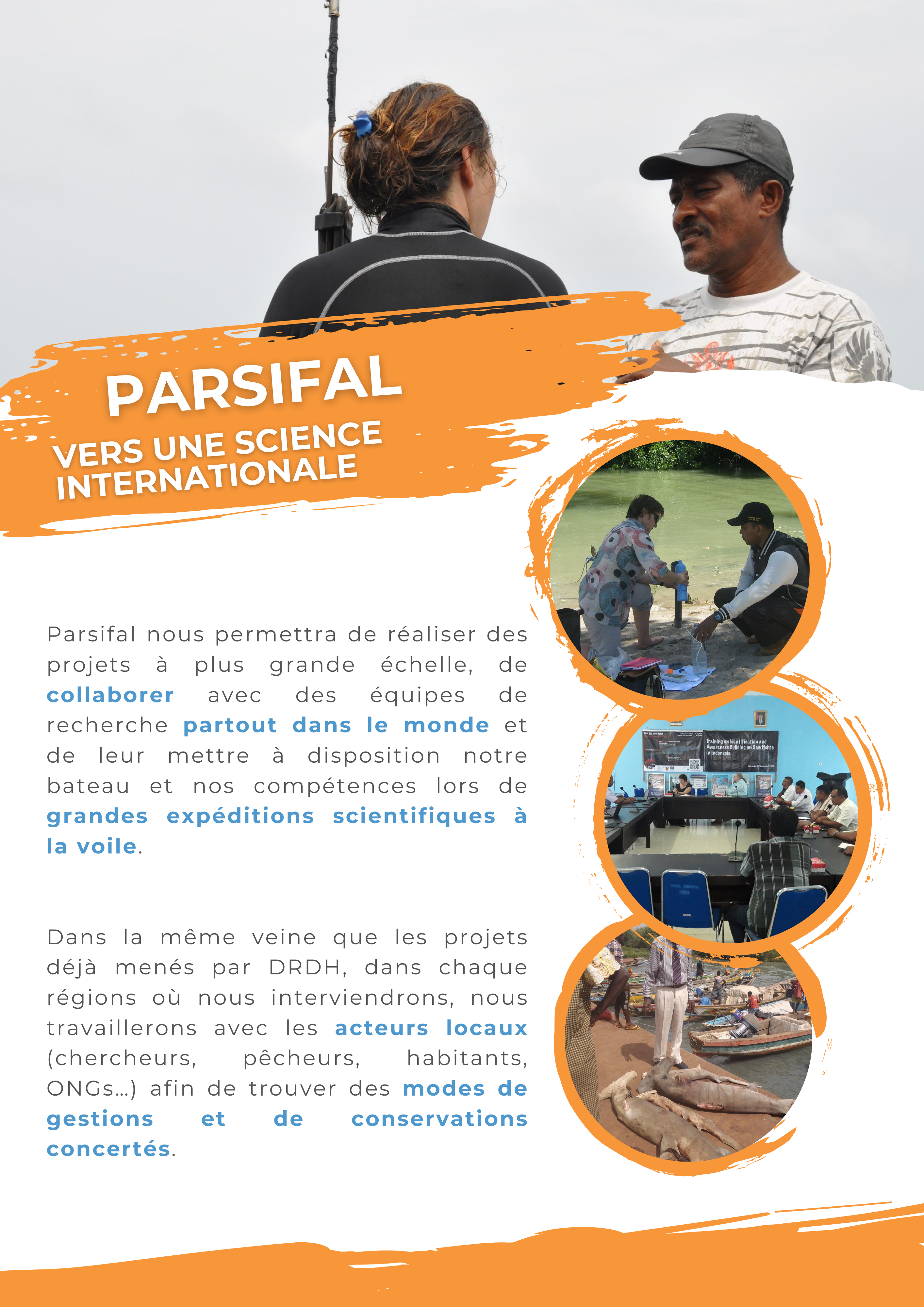 A travers ces expéditions, nous souhaitons également aller à la rencontre des peuples de la mer, de la biodiversité locale pour en apprendre plus sur notre lien avec ce monde méconnu. Nous réaliserons plusieurs documentaires sur nos missions ainsi qu’une web série (qui a déjà débutée sur notre chaine YouTube) afin que le public puisse nous rejoindre dans cette aventure et partager la réalité de la science de terrain. En partant à la rencontre des populations locales, nous inviterons le grand public et les scolaires à découvrir avec nous la diversité des cultures et les spécificités de liens qui se tissent entre les peuples et le milieu marin. Des échanges de connaissances seront proposés avec entre les communautés visitées et le réseau DRDH : le voilier servant alors de passeur de savoir.